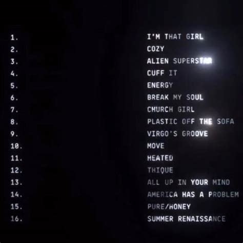 As Beyoncé continues to redefine the music industry, it is clear that her tracklist renaissance is far from over. With each new project, she pushes the boundaries of her artistry, delivering powerful messages through her music. Whether it's through her solo work or collaborations with other artists, Beyoncé's tracklist will undoubtedly continue to captivate audiences and shape the cultural landscape.